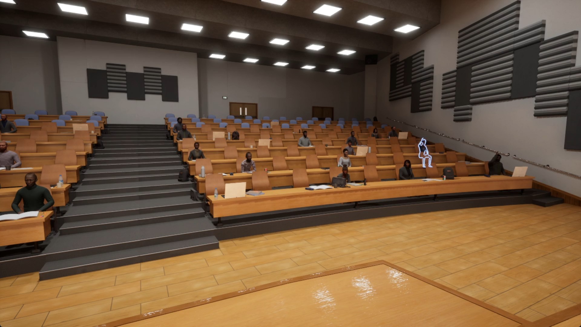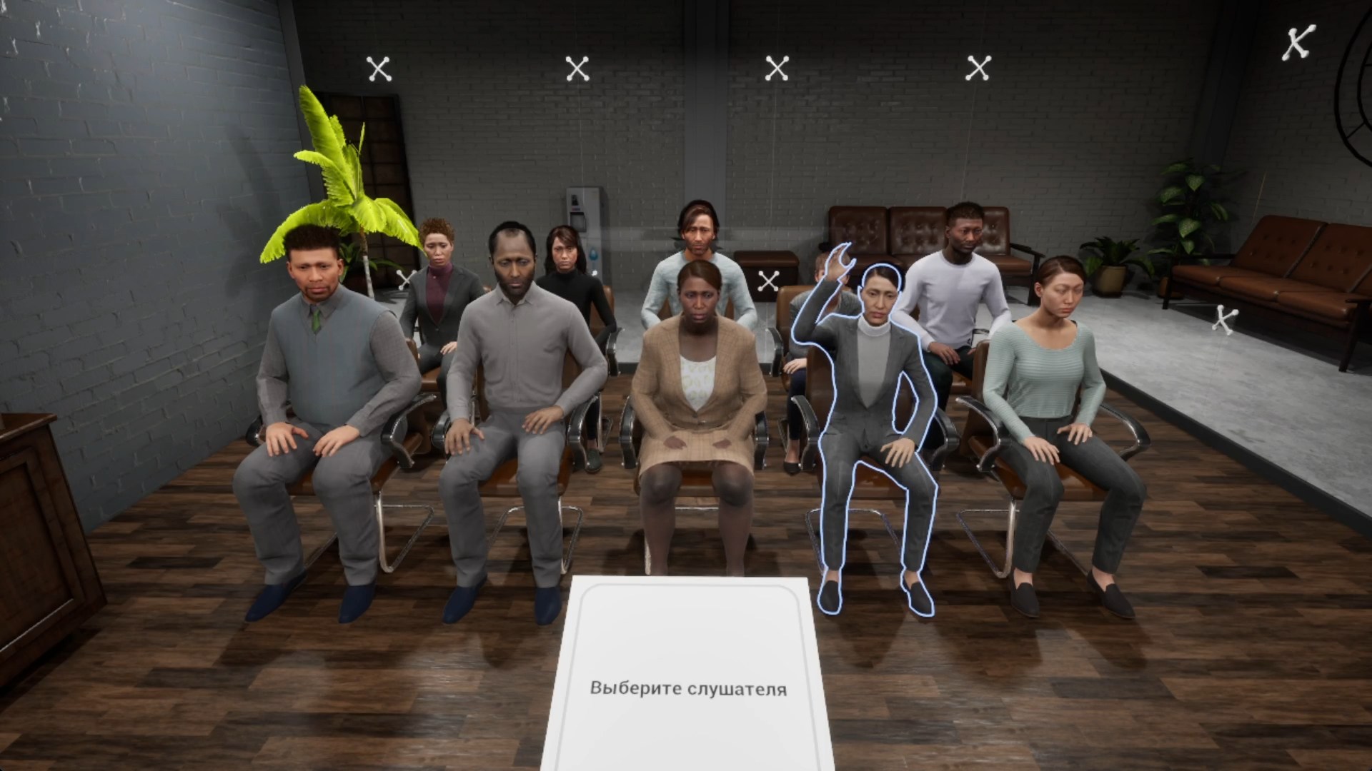 Вы загружаете текст речи, выходите на сцену и выступаете перед залом из фотореалистичных цифровых людей. Они слушают, поднимают руки, задают вопросы по содержанию — от уточняющих до провокационных. Вы сами выбираете, кому дать слово. После выступления система выдаёт детальный разбор: уверенность, полнота ответов, время реакции и конкретные рекомендации.
